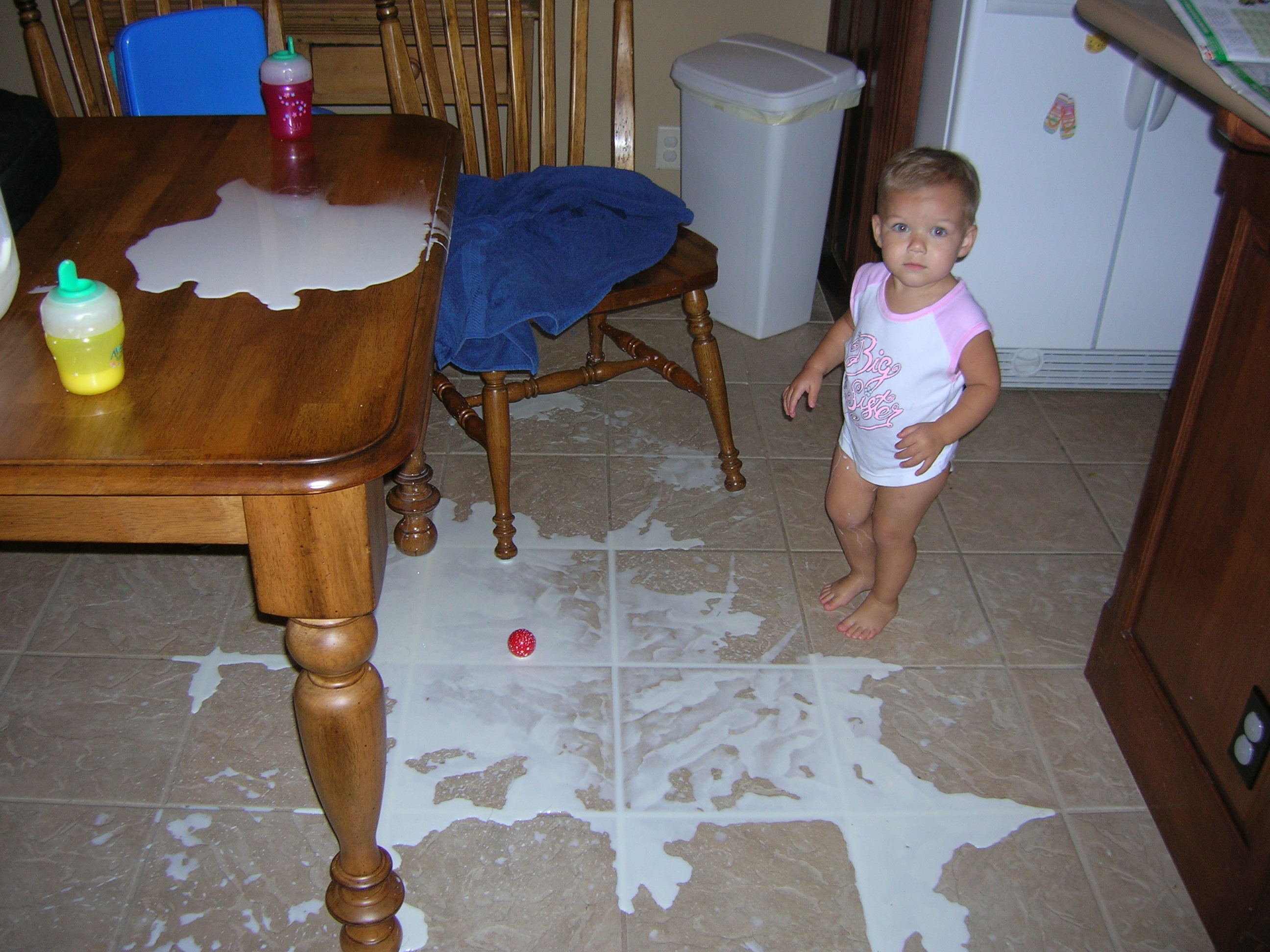 This little lady was given exactly 1/4 cup of milk, but with the help of science it becomes a full gallon.