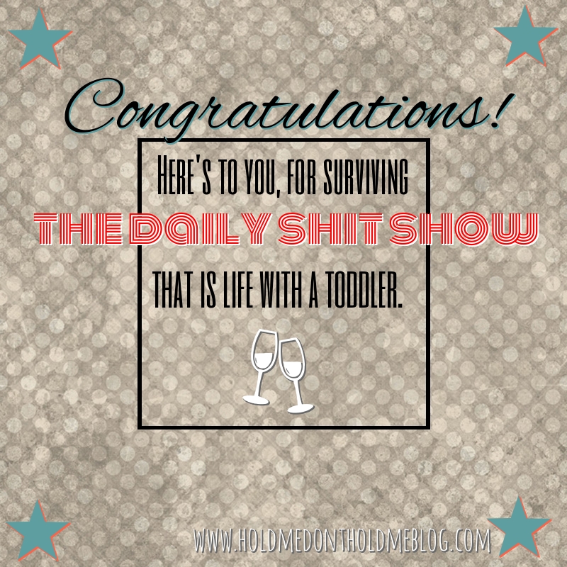 I say we band together, and air our dirty laundry in a place where we can all see it and hopefully feel better. Because at the end of the day, even when it feels like We Shouldn’t Be Alive, somehow we still are. So let’s hear it. Who’s got a “I Survived Parenting Today” story? Or better yet, do you know someone who should be recognized for surviving what can only be described as an impossible trip to the grocery store for peanut butter that they ended up forgetting? Send ’em over here, and let them print out their own extra special “I Survived The Daily Shit Show” award. Slap that up on their fridge, amongst the macaroni art and ketchup stains, because sometimes all we need is a little acknowledgement.